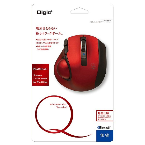 【在庫限り】 ワイヤレスレーザートラックボール[Bluetooth・Mac/Win] 静音・コンパクトモデル (5ボタン・レッド) MUS-TBLF134R
