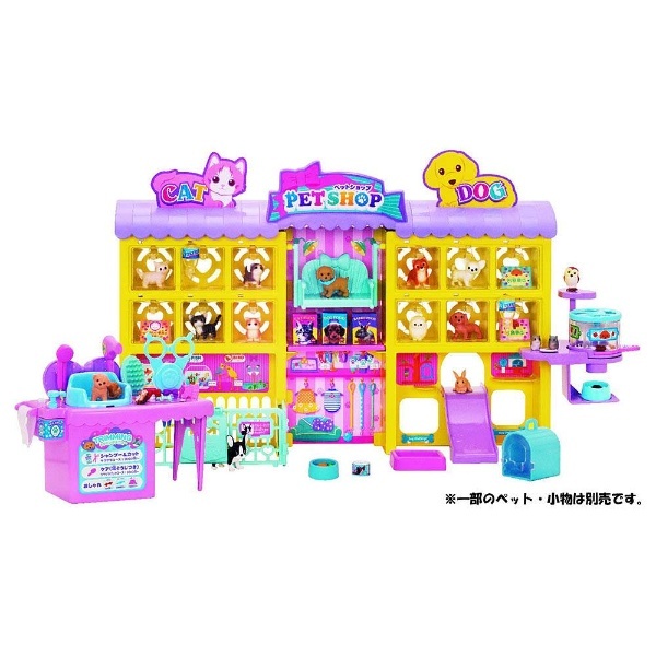 12個のショーウィンドーがあるにぎやかなペットショップ!