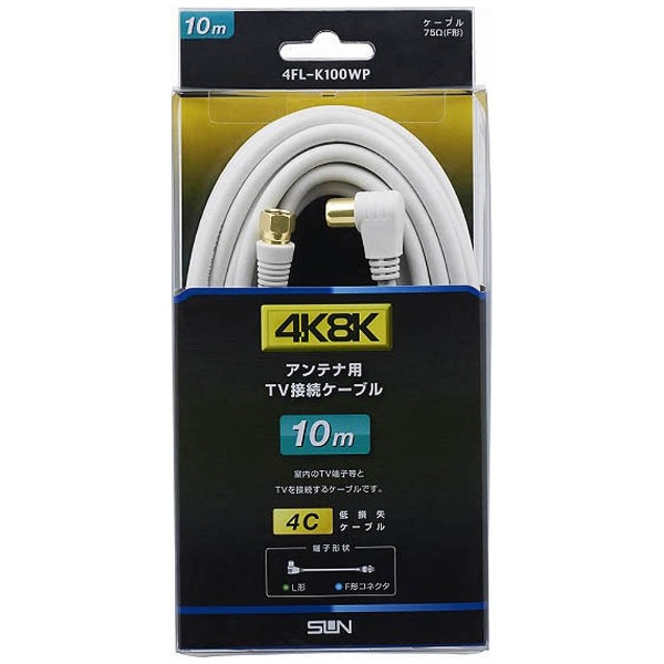 | 商品名 | 4K8K対応 10mアンテナケーブル(4C)[F型接栓-L型プラグ] 4FL-K100WP ホワイト |