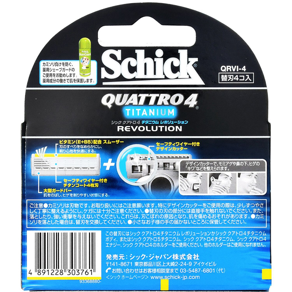 | 商品名 | Schick(シック) クアトロ4 チタニウム レボリューション 替刃4個 〔ひげそり〕 |