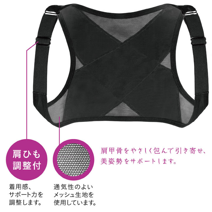 健康グッズ ウエア・サポーター【美姿勢宣言】こっそり美姿勢宣言します 女性用(M-Lサイズ:肩幅40〜42cm・身長160〜170cm/ブラック) 3B-3399【肩こりの悩み】 【864】
