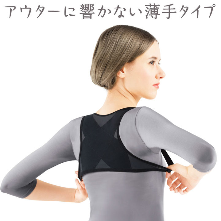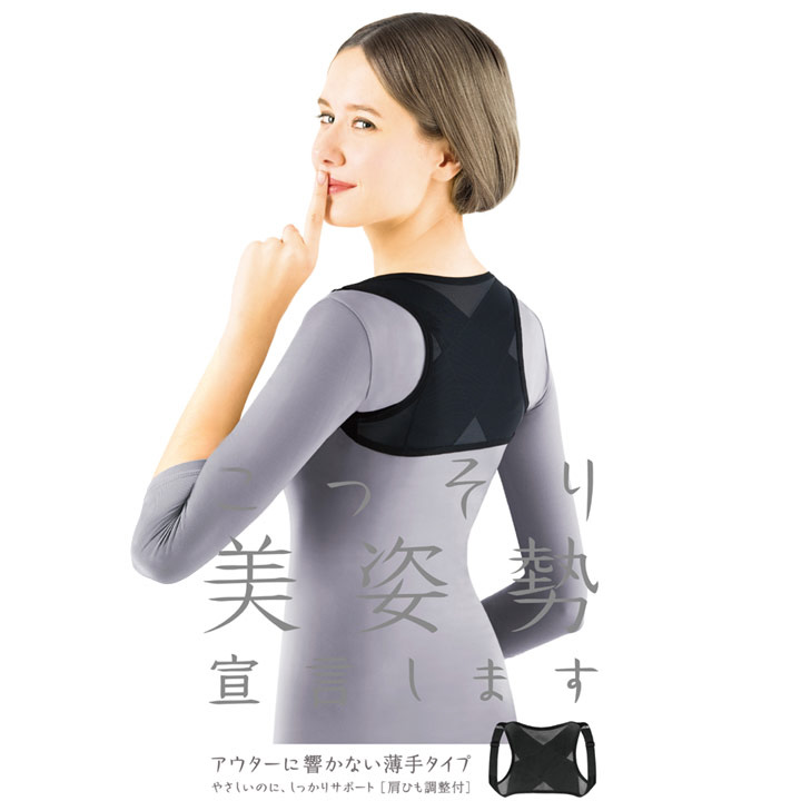 アウターに響かない薄手タイプの姿勢矯正ベルトです。