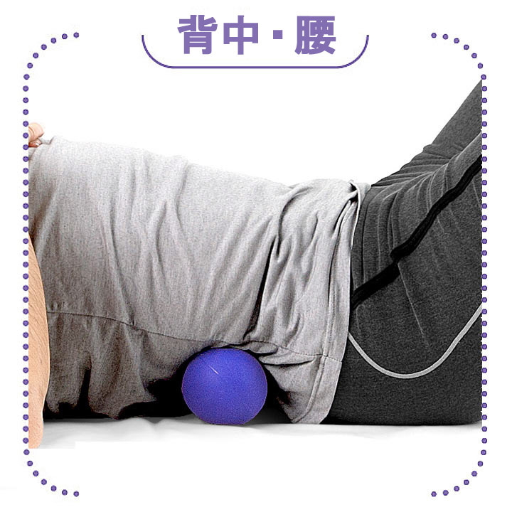 ●やり方1:コリの気になるところにボールを当て、ゆっくりグィ〜っと体重をかけていきます。