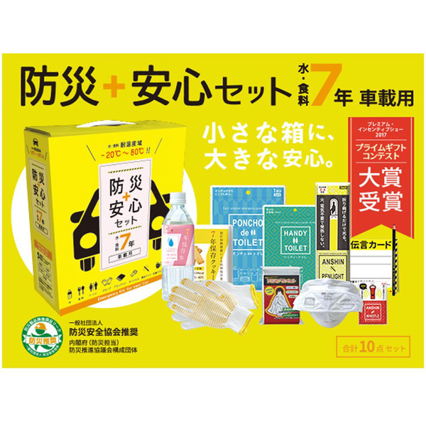 | 商品名 | 防災+安心セット 水・食料7年 車載用(防寒具:アルミブランケット) 9005 [7年保存 /その他] 【864】 |