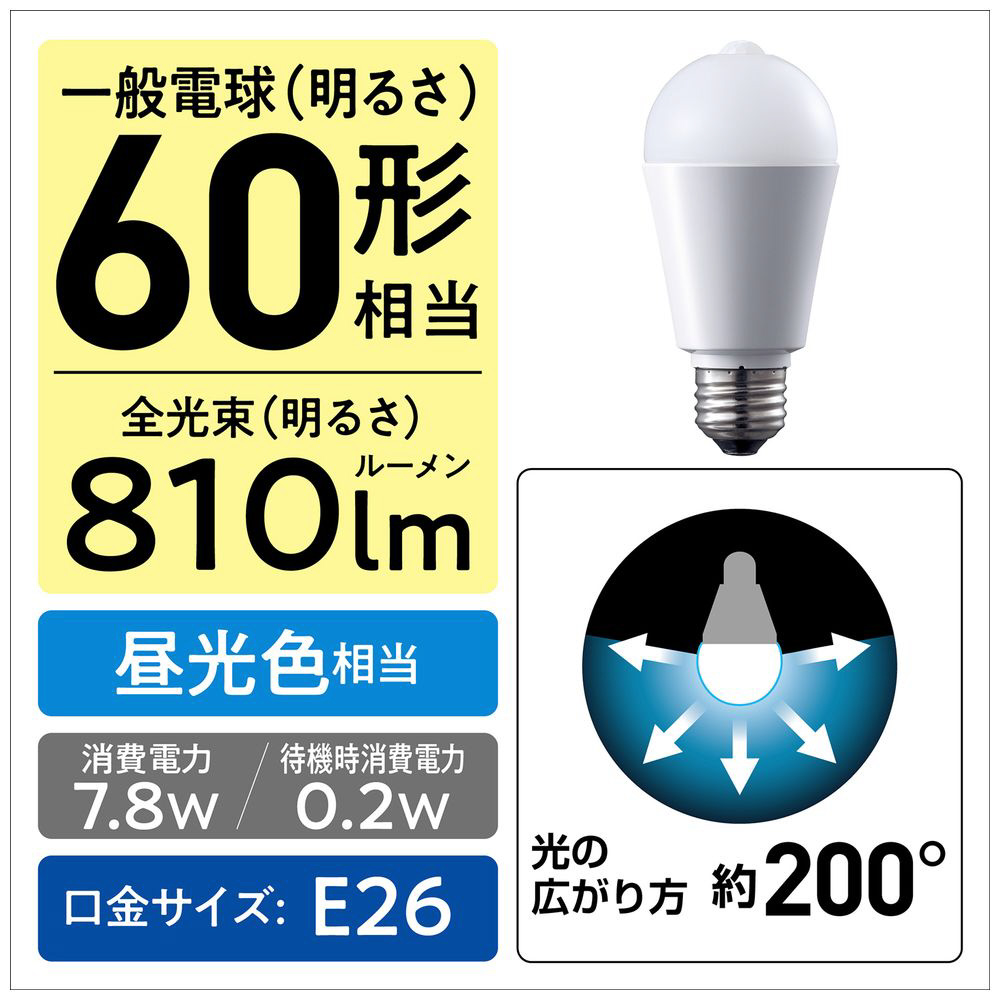 LDA8D-G/KU/NS LED電球 人感センサー付 ホワイト [E26 /昼光色 /1個 /60W相当 /一般電球形]