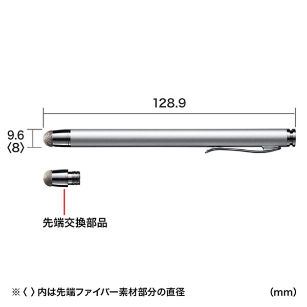 | 商品名 | 〔タッチペン:静電式 / 感圧式 / 光学式〕 導電性ファイバー素材タッチペン(先端交換部品付属・シルバー) PDA-PEN43SV |