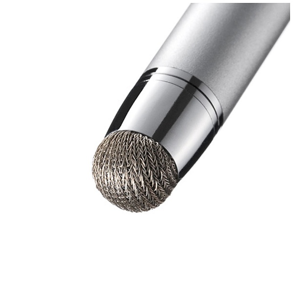 先端にファイバー素材を使い、滑らかな操作が可能なタッチペン。シルバー。