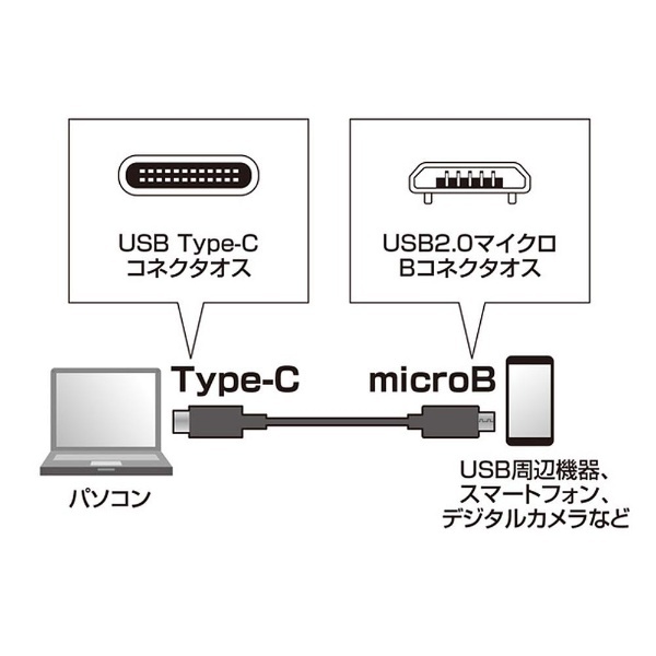 ■ コネクタ形状:USB Type-Cコネクタオス−USB2.0 microBコネクタオス