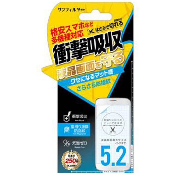 スマートフォン用[5.2インチ] 衝撃自己吸収フィルム さらさら防指紋 52-ASB 【864】