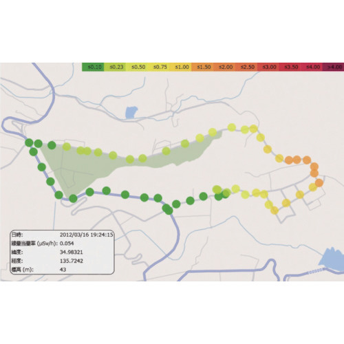 ■携帯端末に記録したデータから、放射線量マップを作成することも可能です。