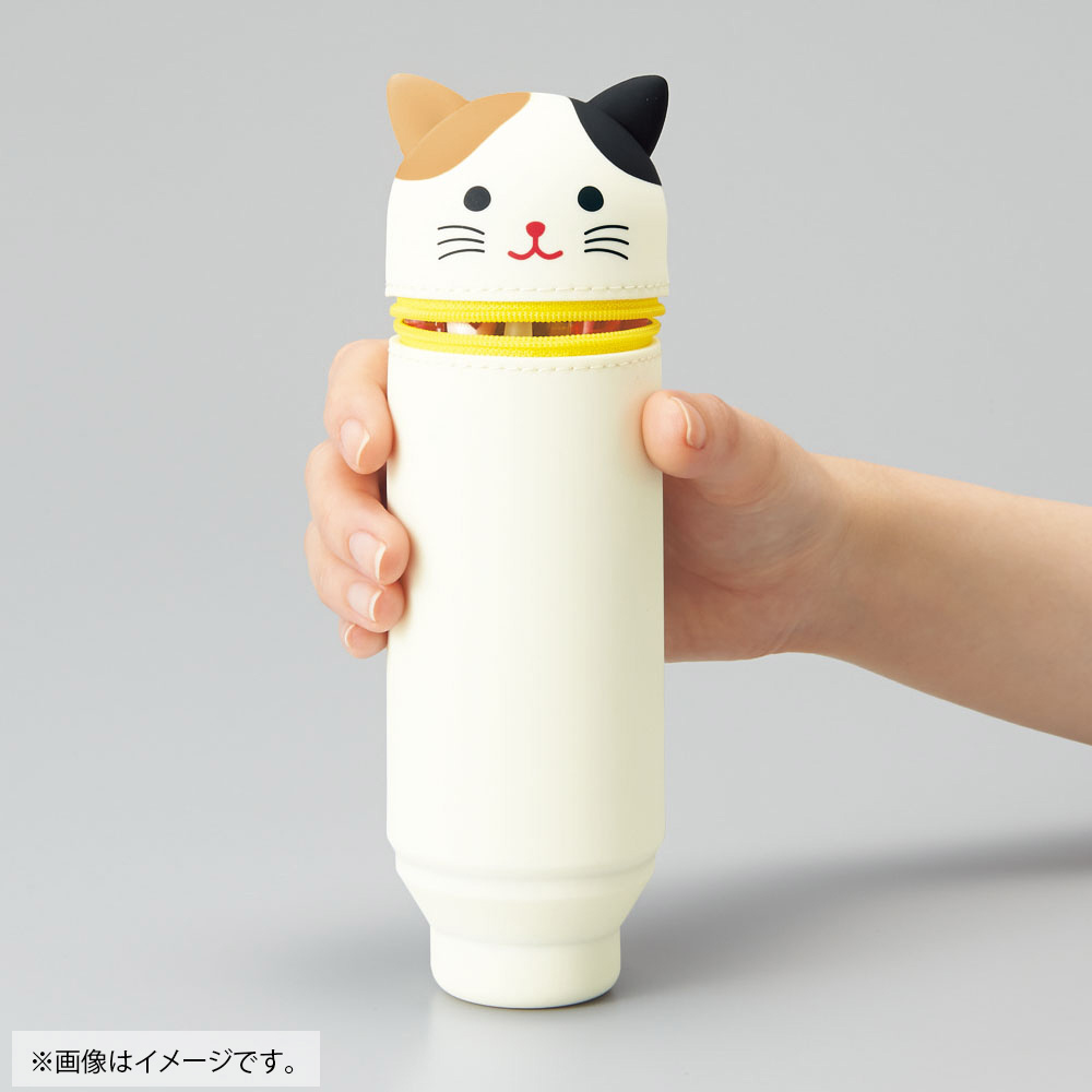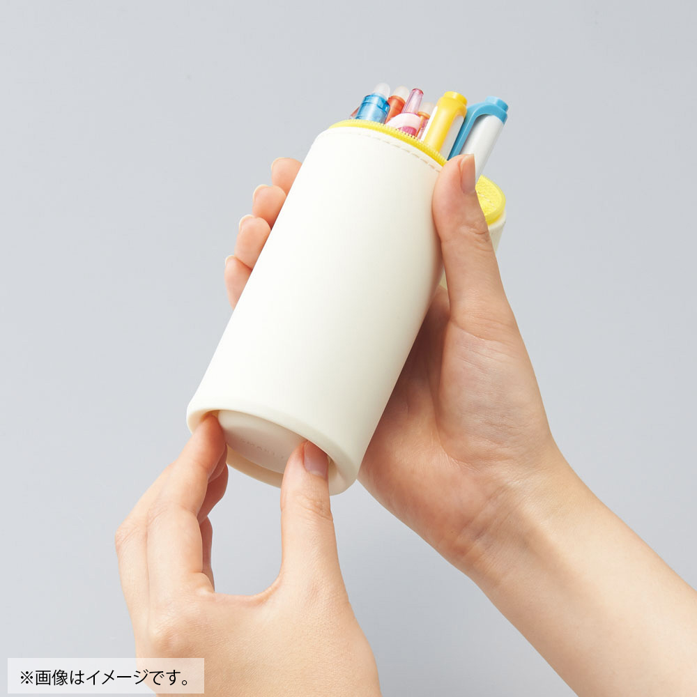 大好評の「立つ」ペンケース。上から押すだけでペンスタンドに早変わり。
