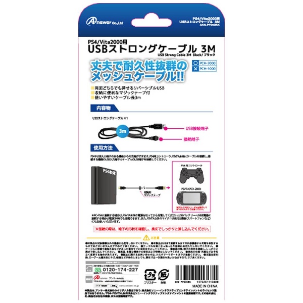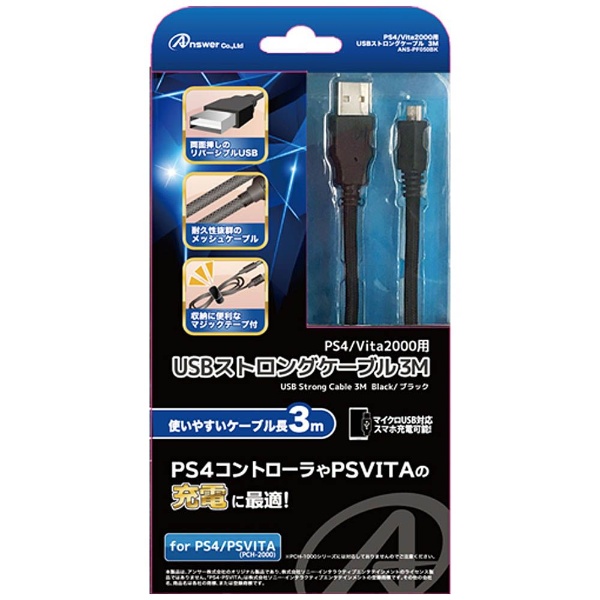 | 商品名 | PS4/Vita2000用 USBストロングケーブル 3M [PS4/PSV(PCH-2000)] [ANS-PF050BK] |