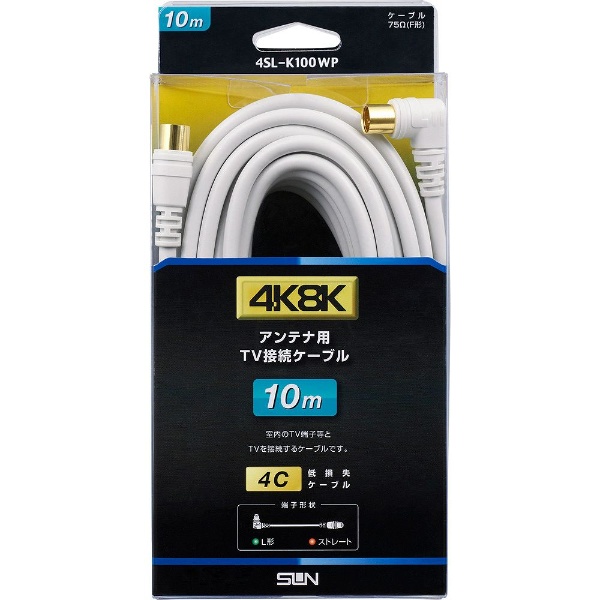 | 商品名 | 4K8K対応 10mアンテナケーブル(4C)[ストレートプラグ-L型プラグ] 4SL-K100WP ホワイト |
