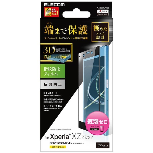 Xperia XZs用のラウンドした液晶画面の縁まで貼れる気泡ゼロタイプの反射防止フィルムです