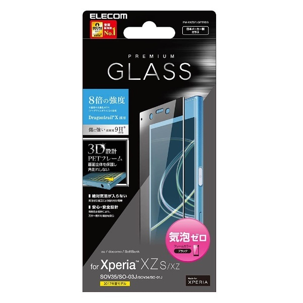 通常のガラスに比べ8倍の強度を誇る旭硝子社製特殊ガラス“Dragontrail(R)X”を使用し、角割れしないフレーム付き。 美しいガラスで画面の端まで保護するフルカバータイプのXperia XZs用ガラスフィルム。