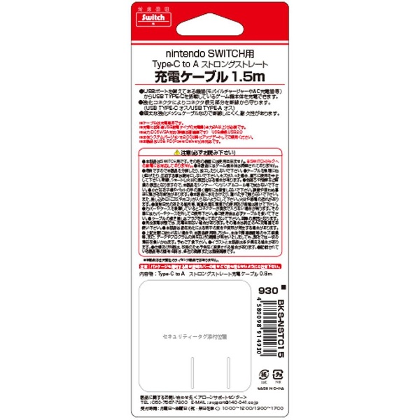 | 商品名 | Switch用Type-C充電ケーブル 1.5m [Switch] [BKS-NSTC15] 【ビックカメラグループオリジナル】【864】 |