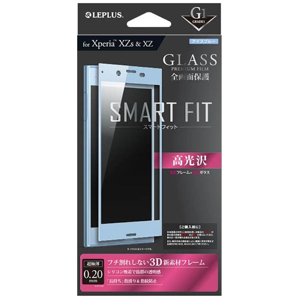 Xperia XZs/XZ用 G1 GLASS PREMIUM FILM 全画面保護 SMART FIT 高光沢 0.2mm アイスブルー LEPLUS LP-XPXZSFGGBL