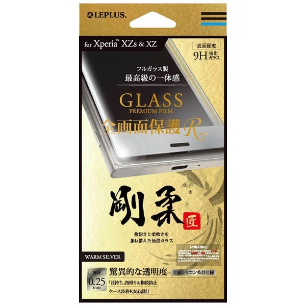 Xperia XZs/Xperia XZ用 剛柔 GLASS PREMIUM FILM 全画面保護 高光沢 剛柔ガラス 0.25mm ウォームシルバー LEPLUS LP-XPXZSFGRGSV