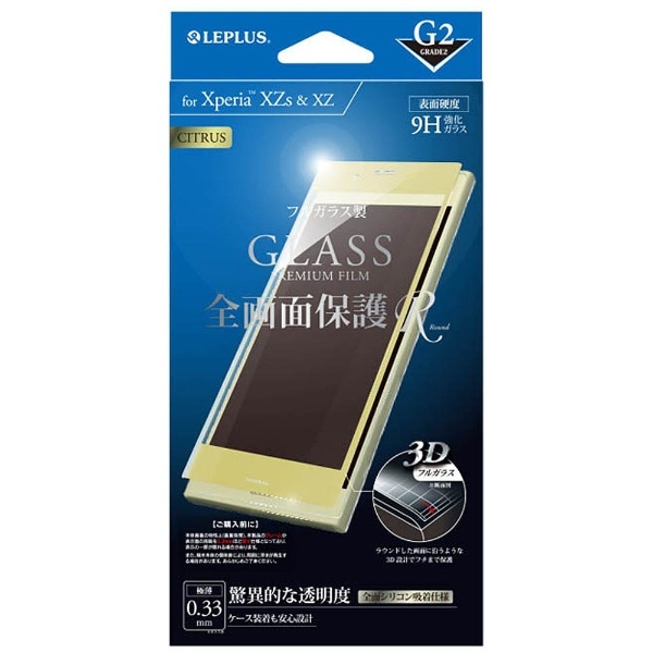 Xperia XZs / Xperia XZ用 G2 GLASS PREMIUM FILM 全画面保護 R 高光沢 0.33mm シトラス LEPLUS LP-XPXZSFGRCGR