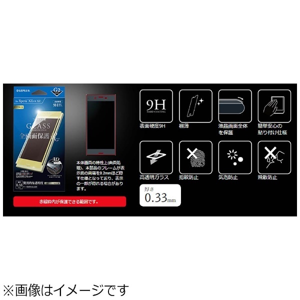 [G2(GRADE2)] ガラス厚0.33mmの3D設計!全面吸着仕様で驚異的透明度。すべてガラス素材で端末の曲面までしっかり保護。高級感と滑らかな指触りを実現。硬度9H表面強化ガラス。清浄布・埃除去シール・クロス付