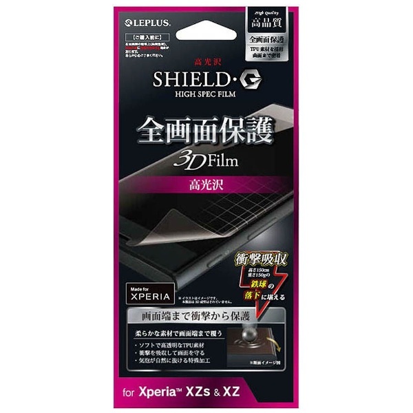 商品名 Xperia XZs / Xperia XZ用 SHIELD・G HIGH SPEC FILM 全画面保護 3D Film・光沢・衝撃吸収 LEPLUS LP-XPXZSFLGFL