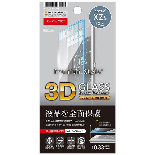 | 商品名 | Xperia XZs / Xperia XZ用 液晶保護ガラス スーパークリア シルバーフレーム PG-XZSGL08 |