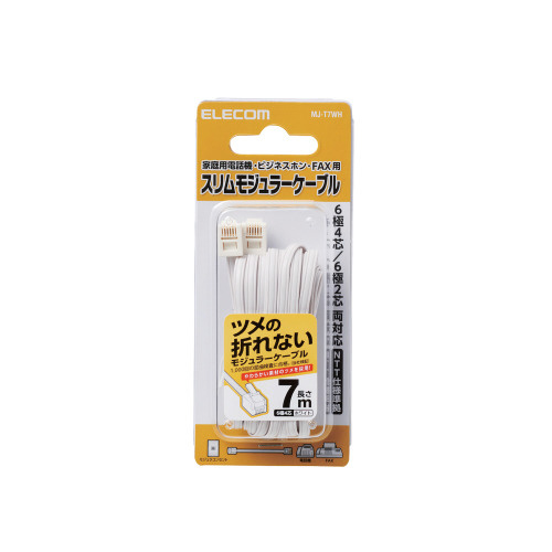 | 商品名 | スリムモジュラーケーブル (7.0m/4極6芯/爪折れ防止/ホワイト) MJ-T7WH |
