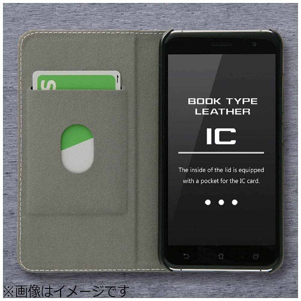 内側にはICカードポケットの付いた薄くてスリムなレザーに、キャラクターデザインがプリントされた手帳型ケース。