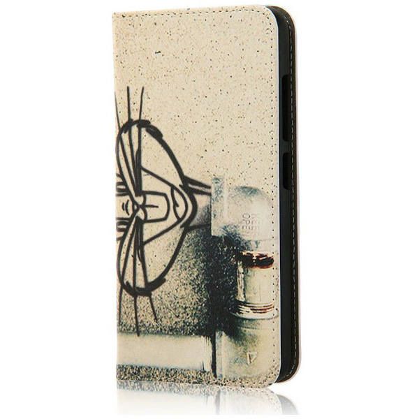 内側にはICカードポケットの付いた薄くてスリムなレザーに、キャラクターデザインがプリントされた手帳型ケース。