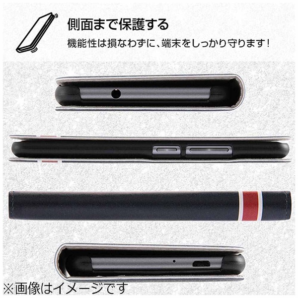 内側にはICカードポケットの付いた薄くてスリムなレザーに、シンプルなオリジナルデザインがプリントされた手帳型のケース。