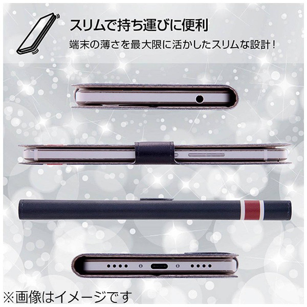 内側にはICカードポケットの付いた薄くてスリムなレザーに、オリジナルのおしゃれなデザインがプリントされた手帳型のケース。マグネット式フリップ付きなのでケースの開閉が簡単に行えます。