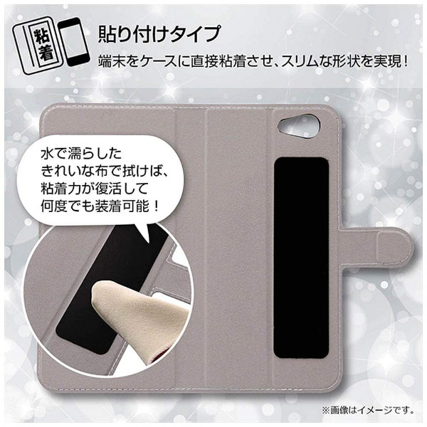 内側にはICカードポケットの付いた薄くてスリムなレザーに、オリジナルのおしゃれなデザインがプリントされた手帳型のケース。マグネット式フリップ付きなのでケースの開閉が簡単に行えます。