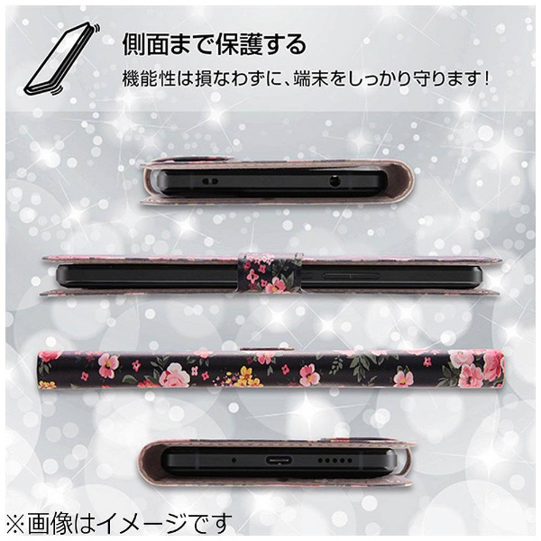 内側にはICカードポケットの付いた薄くてスリムなレザーに、オリジナルデザインがプリントされた手帳型ケース。マグネット式フリップ付きなのでケースの開閉が簡単に行えます。