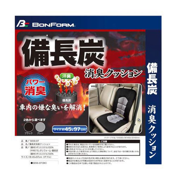5656-07GR シートクッション 備長炭消臭クッション 軽/普通車用 ダブル 備長炭消臭 丸洗いOK ストッパー付き サイズ:45×97×2cm カラー:グレー