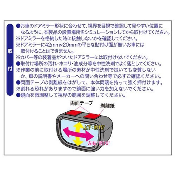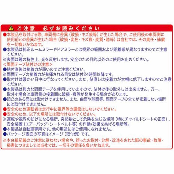 ドアミラーの視界を妨げない、吊下げタイプのサポートミラーです。