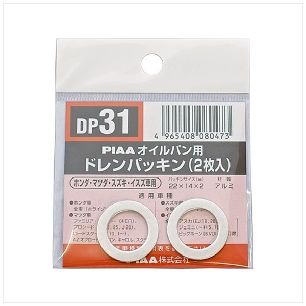 | 商品名 | ドレンパッキン SAFETY 【ホンダ・スズキ・マツダ車用】 2枚入リ DP31 【864】 |