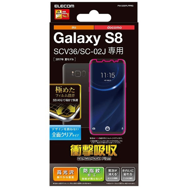 | 商品名 | Galaxy S8用 フルカバーフィルム 衝撃吸収 防指紋 光沢 PM-GS8FLFPRG |