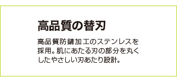 肌にあたる刃の部分を丸くしたやさしい刃あたり設計です。