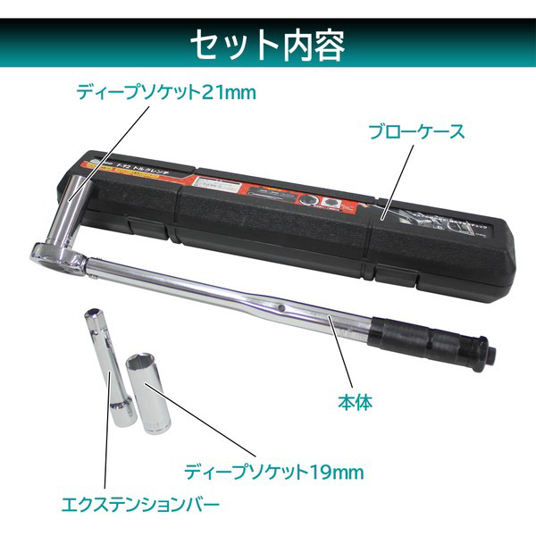 トルクレンチ ソケットサイズ 19・21(薄型ロングソケット)mm エクステンションバー付 F-92