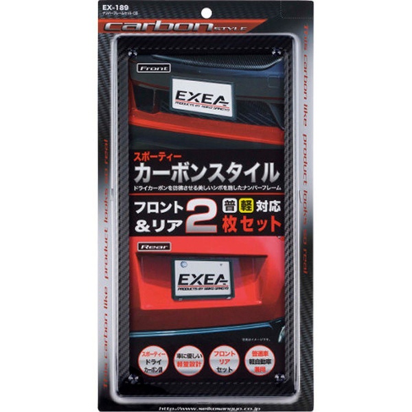 車外用品 EXEA(エクセア) ナンバーフレーム ナンバーフレームセット カラー:カーボン フロント/リア用2枚セット