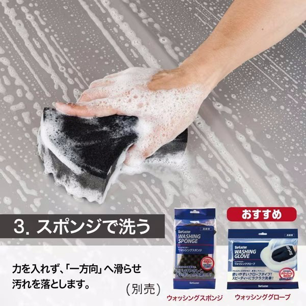 ルーフ、ボンネットといった部分ごとに洗い流すと、ムラなく仕上がります。ックスやコーティング被膜を研磨せず、全塗装色対応でホワイト車、メタリック・パールマイカ塗装車、コーティング車まで使えます。