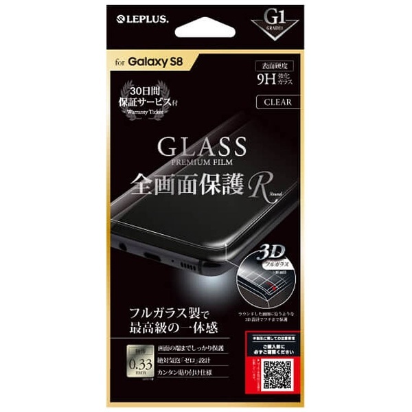 【在庫限り】 Galaxy S8用 G1 GLASS PREMIUM FILM 全画面保護 R 高光沢 0.33mm クリア LEPLUS LP-GS8FGRCL