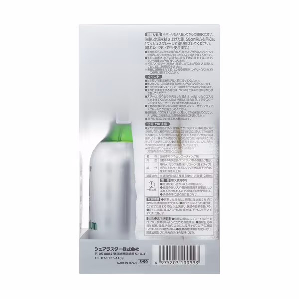 S-99 カーコーティング剤 ゼロプレミアム ガラス系高艶・高耐久 UV吸収剤配合 nano+配合ノーコンパウンド 内容量:280ml