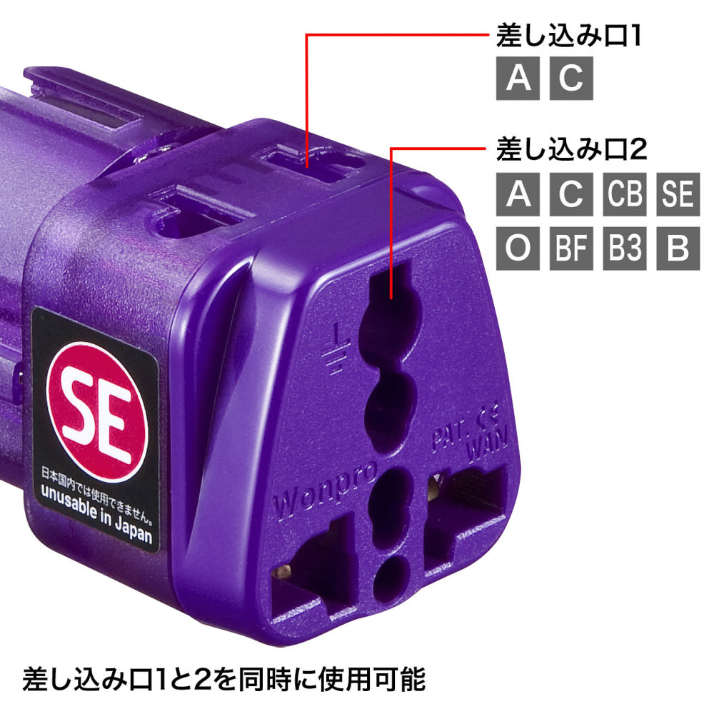 ※上面の1口はA・Cタイプが差し込めます。(2つのプラグを同時に差し込むことができます)