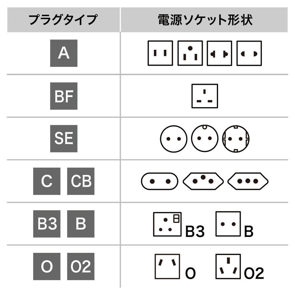 ※このプラグセットで電圧の変換はできません。必要に応じて変圧器が必要です。