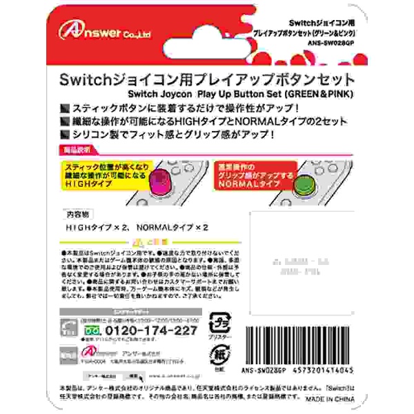 Switchジョイコン用 プレイアップボタンセット グリーン&ピンク [Switch] [ANS-SW028GP]