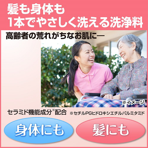 髪も身体もやさしく洗い上げる低刺激性洗浄成分のヘッド&ボディシャンプーです。うるおい成分(セラミド機能成分、ユーカリ葉エキス)が肌のうるおいを守って、しっとりとした洗い上がりです。フレッシュフローラルの香り(微香性)。