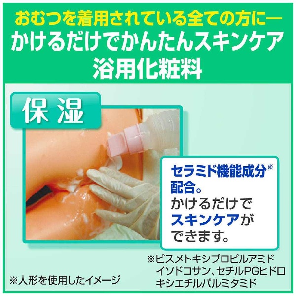 入浴・手浴・足浴、上がり湯、身体の洗浄、清拭に使える浴用化粧料です。適量をお湯に入れ、つかる、かける、拭くだけで簡単にスキンケアできます。カサつきやすい肌にうるおいを補います。保湿成分(セラミド機能成分)が肌の角層まで浸透し、うるおいのある素肌に整えます。やさしいフローラルの香り。使用後もほのかに香りが持続します。陰部洗浄にもおすすめです。
