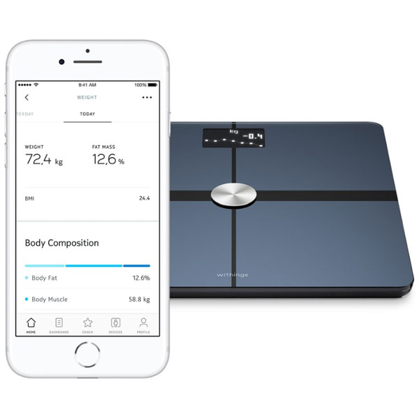 特許取得済みのPosition Control(TM)技術を使用して、最も正確な体組成の測定値(体重、体脂肪、水分の割合、筋肉と骨量)をご提供するWi-Fiスケールです。