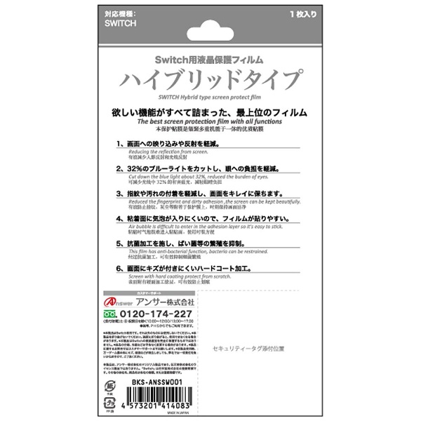 | 商品名 | Switch用ハイブリッドフィルム [Switch] [BKS-ANSSW001] 【ビックカメラグループオリジナル】【864】 |